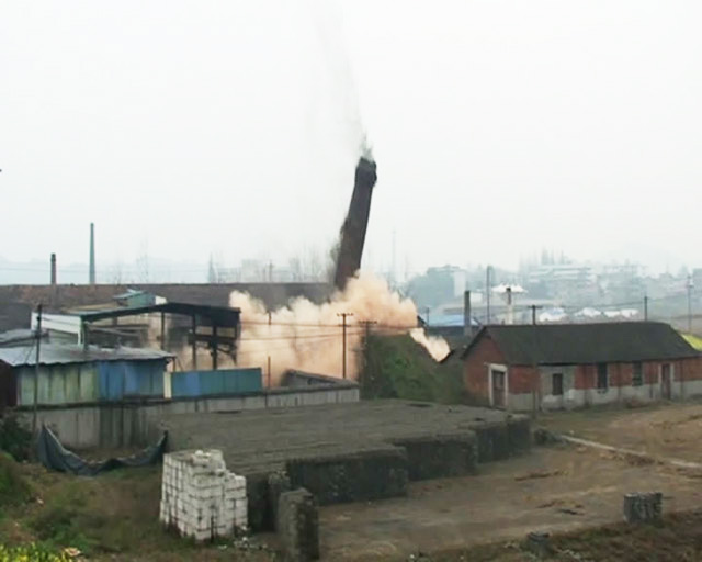 ----富阳新登镇48米烟囱成功爆破