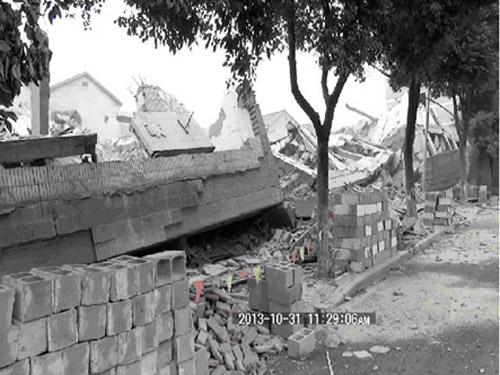2013年10月31日上午11时20分,随着一声巨响,由浙江物产京安爆破工程有限公司承担爆破施工的德清县武康城西片千秋村4幢3200多平方米商住旧楼房轰然倒塌,楼体在阵阵浓烟中化为一片废砾。同时,爆破震动微弱,周围所有需保护建(构)筑物均毫发无损,爆破拆除工作取得圆满成功。