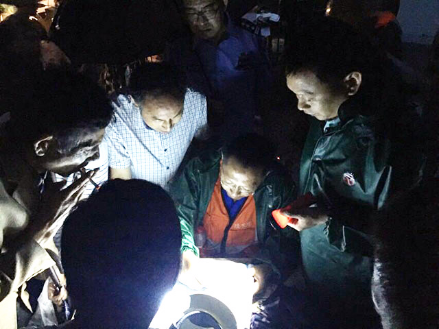 公司总工程师辛振坤不顾湍急的江水危险,带头顶着暴雨乘坐冲锋舟带领人员上坝实施作业,经过通宵达旦地连续奋战,于27日上午8点,成功实施了第一次爆破,在拦水坝的东部段炸开了42米缺口。