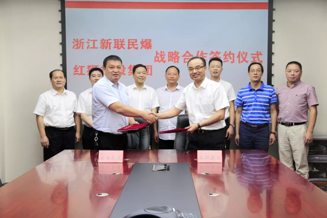 8月9日上午,浙江新联民爆器材有限公司迎来又一盛事,新联民爆公司与红狮控股集团有限公司在红狮控股集团举行战略合作协议签约仪式,郑重签署了战略合作协议。红狮控股集团董事长章小华、副总经理郭其正、范炜刚、姜根林,新联民爆副总经理陈伟、营销中心经理周荣坤、民爆部副经理于国华、企业发展部吴金华,京安爆破公司总经理申屠建新、副总经理崔晓明参加了签约仪式。