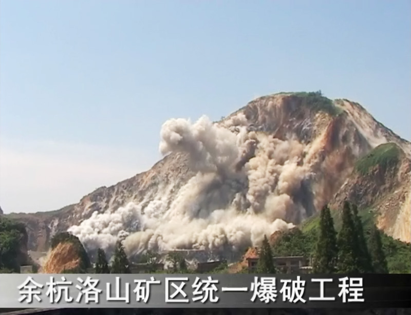杭州市余杭区仁和镇洛山矿区统一爆破工程,结束了原来矿山开采无统一规划、混乱开采的情况。该项目矿区面积2000余亩,储量约7500万T。我公司于2005年10月进行的一次硐室爆破,开挖导硐850米,使用炸药220T,爆落方量近60万m